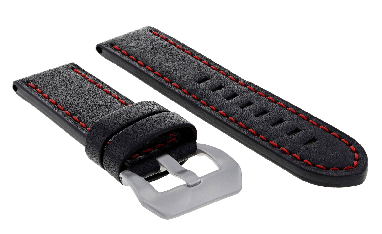 20MM PAM LEATHER WATCH BAND STRAP FOR 40MM PANERAI LUMINOR BLACK RED STICHING