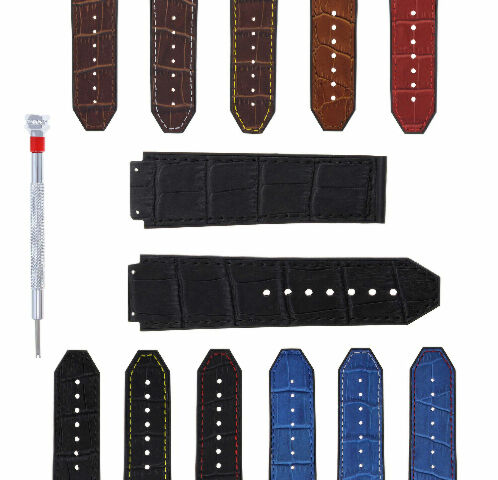 24MM ALLIGATOR LEATHER RUBBER BAND STRAP FOR 44-45MM HUBLOT BIG BANG SCREWDRIVER