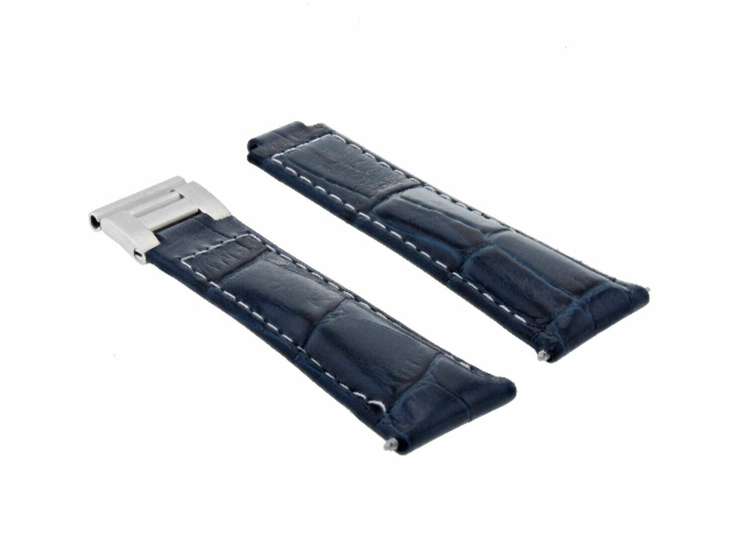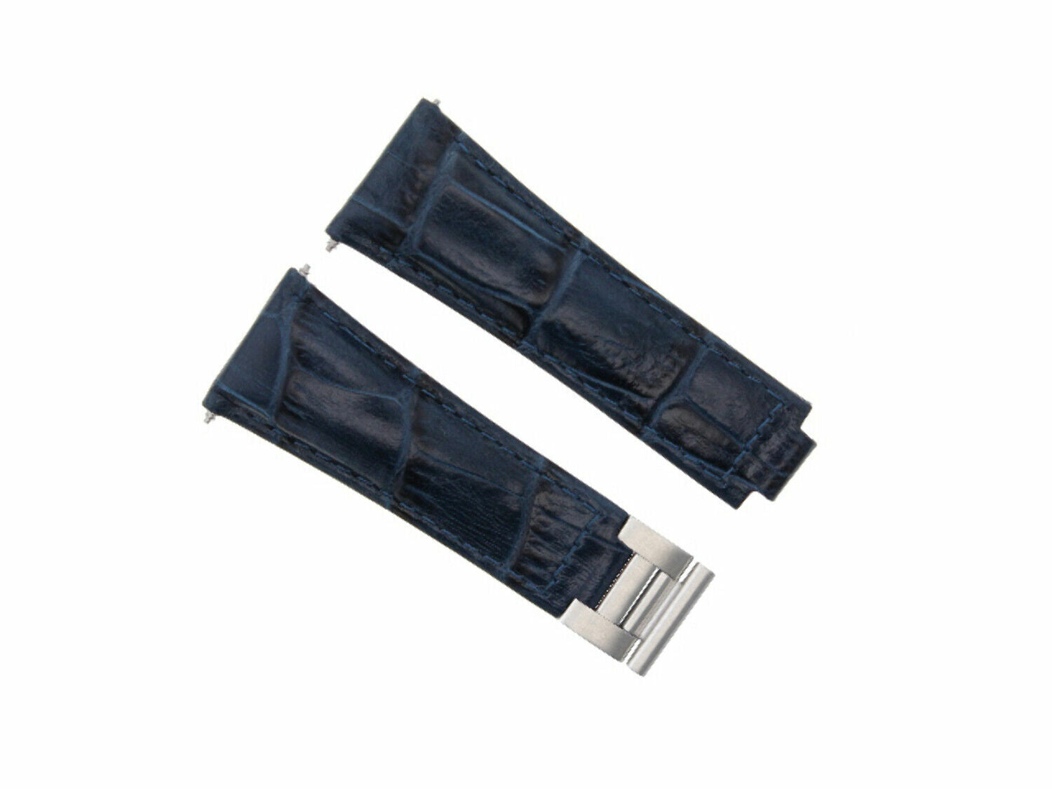 The item for sale is a brand new, aftermarket replacement Italian leather strap with stitching.