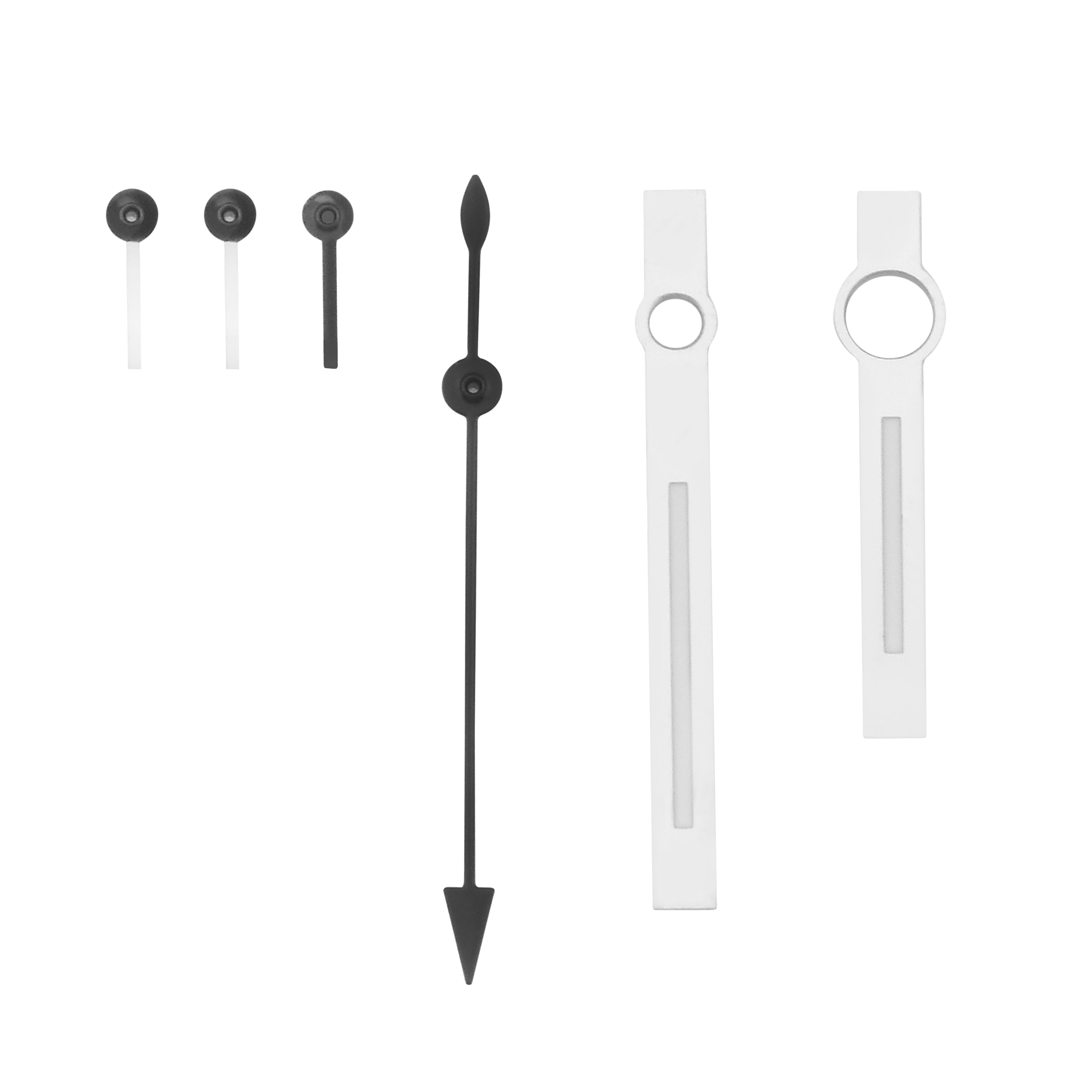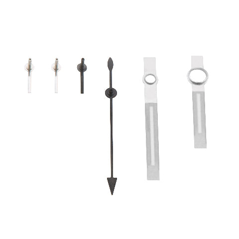 You get 1 sets of Watch Hand and 1 chrono of each white, silver and black side seconds hands with long pipe.